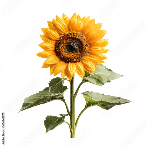 © Heng Heng - AI Stock, Obraz premium A close up photograph of a lush golden sunflower with delicate petals and a central seed filled disk set against a clean white backdrop for maximum visual impact