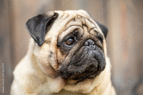 Obraz premium A close-up portrait of a beige pug. High quality photo