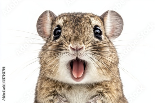 © Kust, Obraz premium A Close-Up Portrait of a Cute and Excited mouse with a Playful Expression, Showcasing Its Big Eyes and Enthusiastic Look Against a White Background