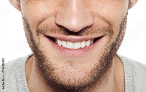 © Антон Федченко, Obraz premium A close-up portrait of a friendly young man with a bright smile and dimples, pure white background