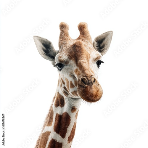 Fototapeta premium A close-up portrait of a giraffe, showcasing its distinct patterned coat and...