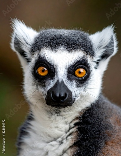 Fototapeta premium A close-up portrait of a lemur with striking amber eyes and a distinctive...