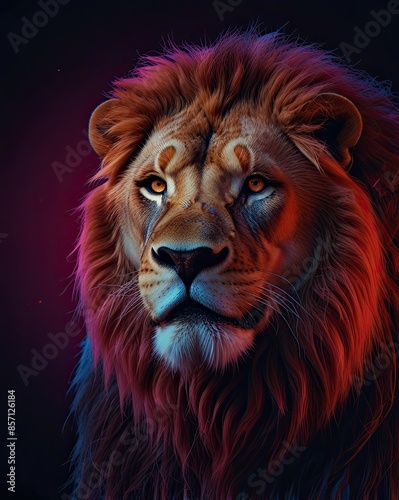 Naklejka premium A close-up portrait of a majestic lion's head with a flowing mane
