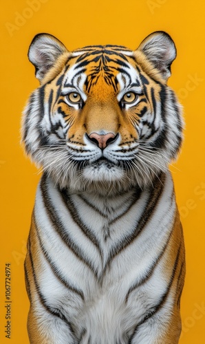 © sergio, Fototapeta premium A close-up portrait of a tiger looking directly at the camera. AI.
