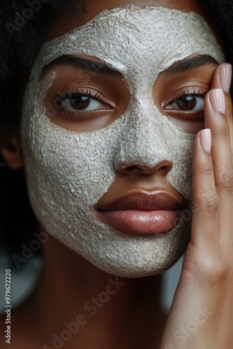 Fototapeta premium A close-up portrait of a woman with a facial mask, highlighting skincare and...