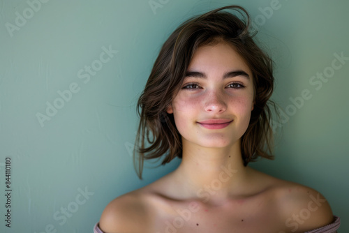 Obraz premium A close up portrait of a young woman with a subtle smile