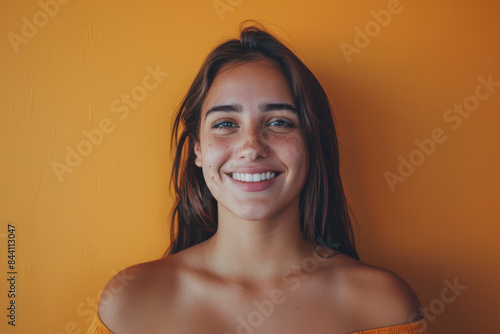 Obraz premium A close up portrait of a young woman with a subtle smile