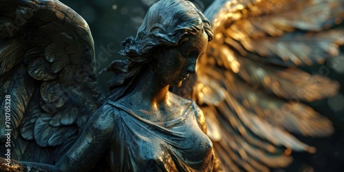 Fototapeta premium A close-up shot of a beautiful angel statue. Perfect for adding a touch of...