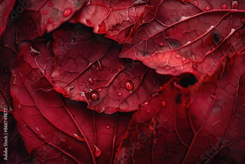 © Fotograf, Fototapeta premium A close-up shot of a bunch of red autumn leaves