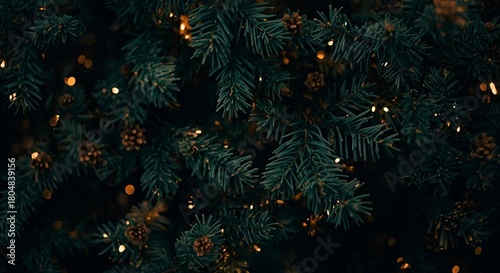 Naklejka premium A close up shot of a christmas tree with pine cones and christmas lights in...