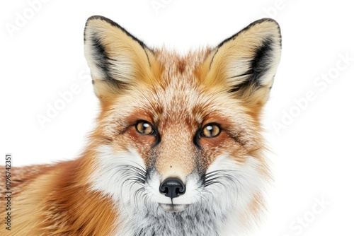 © Alla, Fototapeta premium A close-up shot of a fox's face on a white background