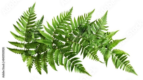 © Fotograf, Naklejka premium A close-up shot of a green plant with leaves and stems on a plain white background