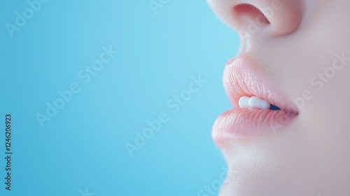 © MAY, Obraz premium A close up shot of a homeopath hands gently placing a single homeopathic pill on a patient tongue, symbolizing individualized and personalized care.