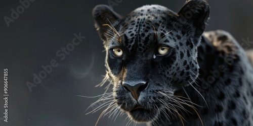© Alexander Chaykin, Naklejka premium A close-up shot of a leopard's face with blurred background