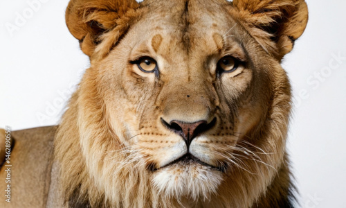 Fototapeta premium A close-up shot of a lion's face on a white background