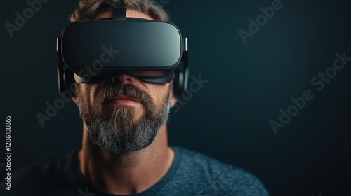 Fototapeta premium A close-up shot of a man immersed in a virtual reality environment,...
