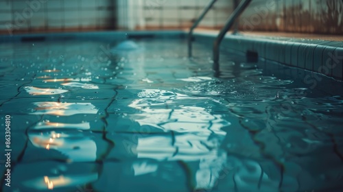 Fototapeta premium A close-up shot of a pool ladder, great for showcasing pool design or water...