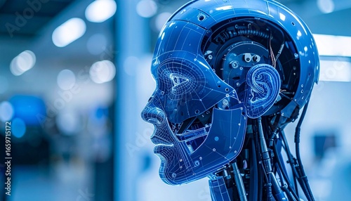 Fototapeta premium A close-up shot of a robotic head in a futuristic setting, emphasizing...