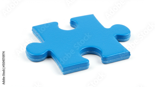 © SriSafitri, Obraz premium A close-up shot of a single, bright blue jigsaw puzzle piece against a plain white backdrop.