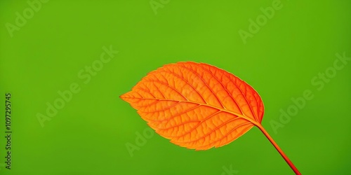© Maneerat, Obraz premium A close-up shot of a single brilliant orange leaf against a muted green background, earthy tones, autumn leaf, macro photography