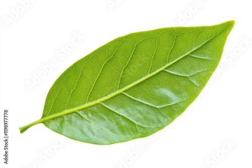 © Ева Поликарпова, Obraz premium A close up shot of a single green leaf on a white background