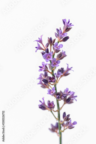 © Shadab Asg, Naklejka premium A close-up shot of a single sprig of lavender showcases its delicate beauty, the vibrant purple flowers creating a soothing and fragrant scene.