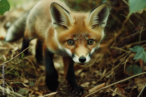 Naklejka premium A close-up shot of a small fox in its natural habitat