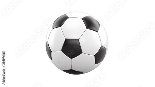 © Sana, Obraz premium A close up shot of a soccer ball with black and white panels against a black background