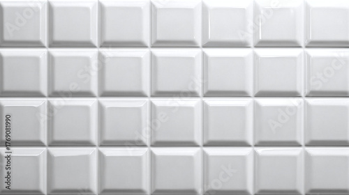 © Thiago, Fototapeta premium A close-up shot of a textured, square-patterned tile wall