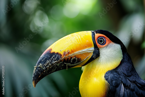 Naklejka premium A close-up shot of a Toucan bird, its focused eyes, documentary photo