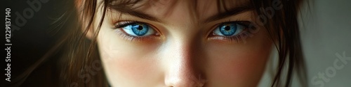 © Ева Поликарпова, Obraz premium A close-up shot of a woman's face with striking blue eyes