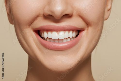© verdian, Obraz premium A Close-Up Shot of a Woman's Radiant Smile, Showcasing Perfectly White Teeth and Healthy Gums, Exuding Confidence and Joy
