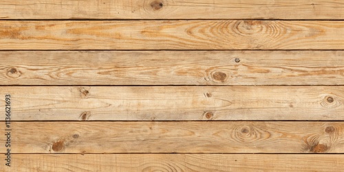 © Collection, Naklejka premium A close-up shot of a wooden plank surface with natural wood grain patterns and knots, featuring a light brown hue that showcases the beauty of natural wood