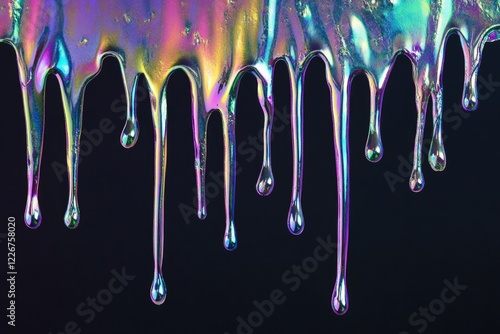 © Ева Поликарпова, Naklejka premium A close-up shot of dripping liquid on a black background, suitable for use in science and technology-related contexts