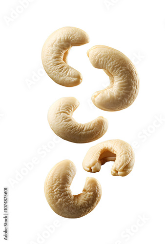 © Pure Pixels (PNG), Naklejka premium A close-up shot of five cashew nuts against a transparent background.