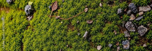 Fototapeta premium A close-up shot of green moss covering a textured surface in a forest,...