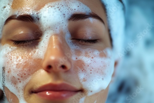 Fototapeta premium A close-up shot of someone wearing a towel wrapped around their head,...