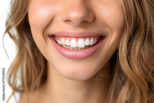 Obraz premium A close-up shot of the lower portion of a woman's Charming smile with white...