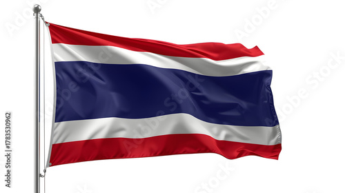 Naklejka premium A close-up shot of the Thailand flag waving in the breeze against a clear sky, symbolizing the country's national pride and heritage