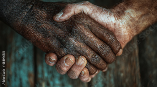 Fototapeta premium A close up shot of two hands clasped together with different skin tones...