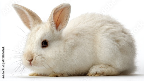 © Fali, Obraz premium A close-up studio portrait of a fluffy, white rabbit against a clean white background