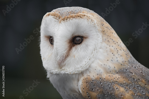 Obraz premium A close up three quarter profile photograph of a barn owl staring to the left...