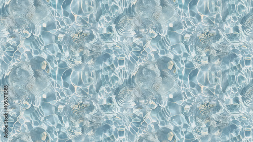 © Ice Cream Paradise, Obraz premium A close-up, top-down view of a clear, tropical blue water surface with caustic patterns, filling the frame