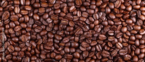 © Janis, Obraz premium A close-up view displays two halves of coffee beans stacked high