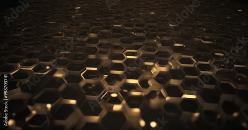 Obraz premium a close-up view honeycomb-like pattern composed of numerous small hexagonal shapes, creating a visually striking and intricate design