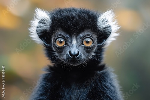 © Fotograf, Fototapeta premium A close-up view of a black and white lemur's face, emphasizing its unique markings