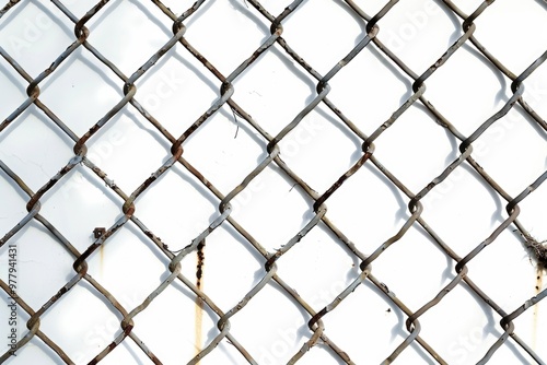 © Fotograf, Fototapeta premium A close up view of a chain link fence with rusty texture and worn-out links
