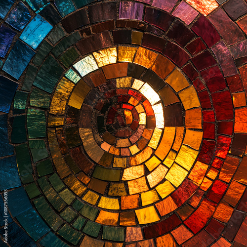 © Mirivox, Fototapeta premium A close-up view of a circular mosaic pattern