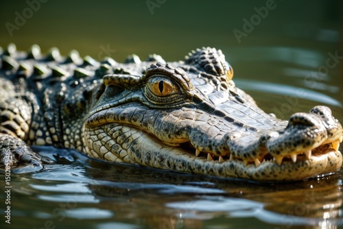 © Alla, Obraz premium A close-up view of a crocodile swimming in the water