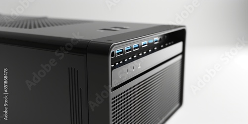 Fototapeta premium A close-up view of a desktop computer on a table, showing details of the...